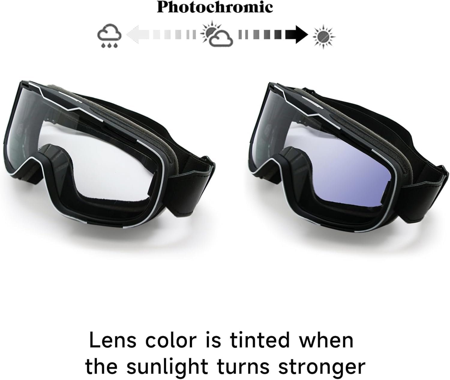 Photochromic Motorcycling Glasses Windproof Sports Sunglasses Helmet Compatible Scratch Resistant Anti-UV